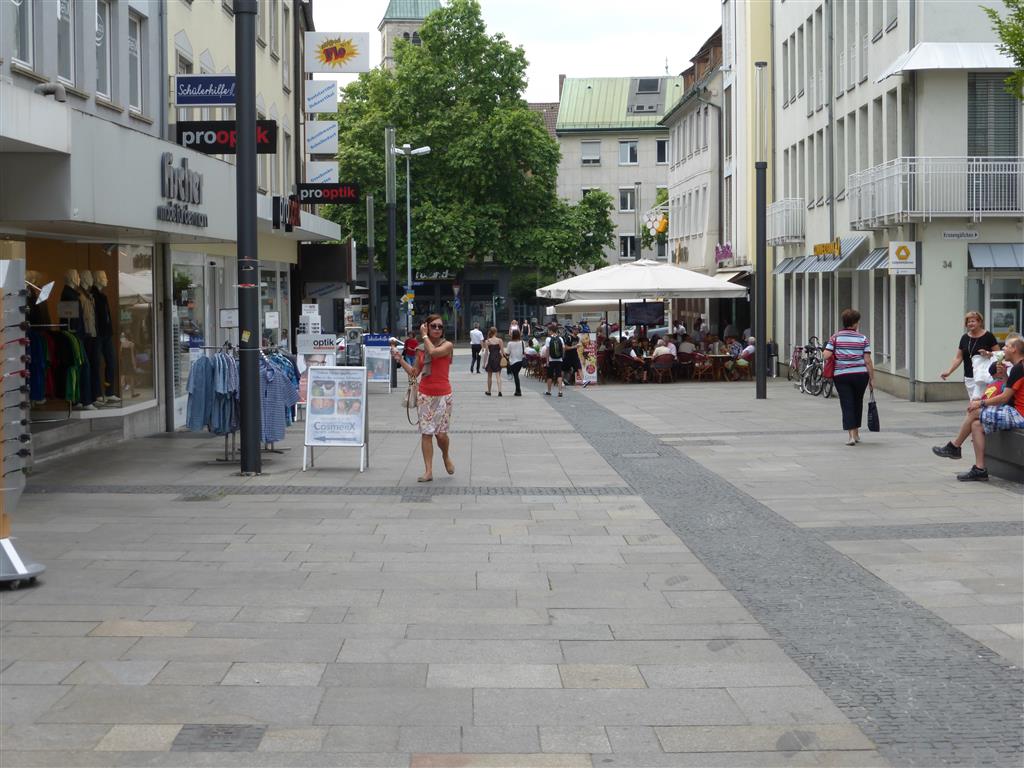 Eine Hilfe könnte sein, um möglichen Konflikten zwischen Radfahrern und Fußgängern vorzubeugen, wenn dem Radverkehr in der Mitte der Straße ein markierter Streifen zugewiesen würde, der auch den Fußgängern zeigt, wo mit Radfahrern zu rechnen ist. Den Radfahrern bliebe der Slalom erspart und Fußgänger könnten entspannter in der Spitalstraße schlendern.